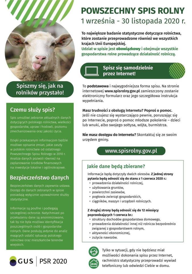 Powszechny Spis Rolny - od 1 września do 30 listopada 2020r.