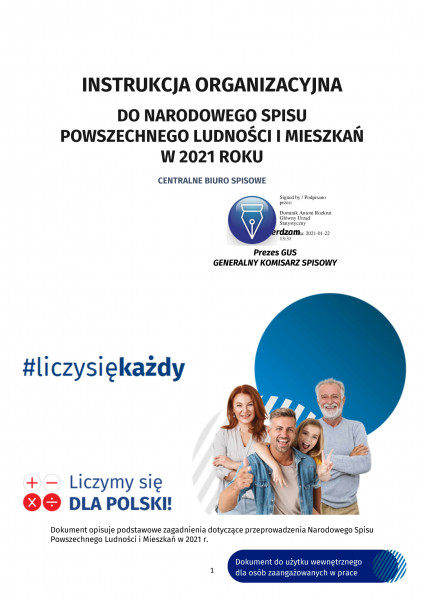 INSTRUKCJA ORGANIZACYJNA DO NARODOWEGO SPISU POWSZECHNEGO LUDNOŚCI I MIESZKAŃ W 2021 ROKU