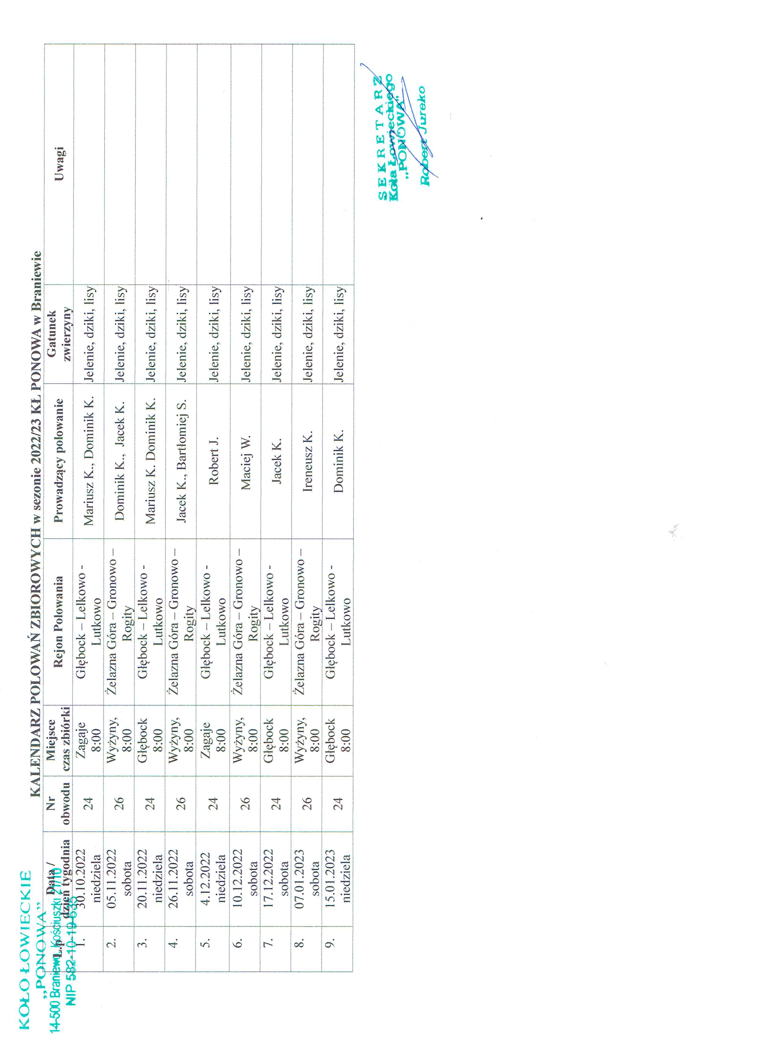 Wersja obowiązująca z dnia 21-10-2022 14:09:45 Drukuj Plan polowań zbiorowych w sezonie łowieckim 2022/2023 w obwodach 24 i 26 Koła Łowieckiego "PONOWA" w Braniewie Załączniki KALENDARZ POLOWAŃ ZBIOROWYCH format: image/jpeg, rozmiar: 358.58 KB, data dodania: 21-10-2022 14:09:45