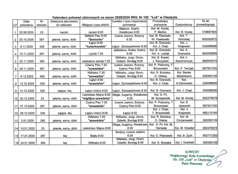 Wersja nieobowiązująca z dnia 13-08-2025 10:12:34 Drukuj Plan polowań zbiorowych - Wojskowe Koło Łowieckie nr 105 „ Łoś” w Olsztynie. Wersja nieobowiązująca Strona może zawierać nieaktualną treść i załączniki. Możesz pozostać na tej stronie lub przejść na wersję z obowiązującą zawartością. Nie pokazuj ponownie Pozostań Przejdź do wersji obowiązującej