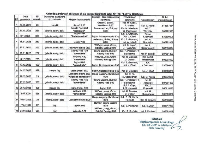 Wersja obowiązująca z dnia 27-08-2025 15:16:45 Drukuj Plan polowań zbiorowych - Wojskowe Koło Łowieckie nr 105 „ Łoś” w Olsztynie.