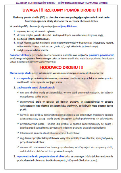 Wersja obowiązująca z dnia 04-02-2026 12:26:48 Drukuj ZALECENIA DLA HODOWCÓW DROBIU - CHÓW PRZYZAGRODOWY (NA WŁASNY UŻYTEK)